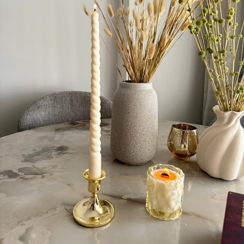 LUCCIA - WHITE CREAM DIAMOND SHAPE GLASS CANDLE. HANDMADE VEGAN SOY CANDLE