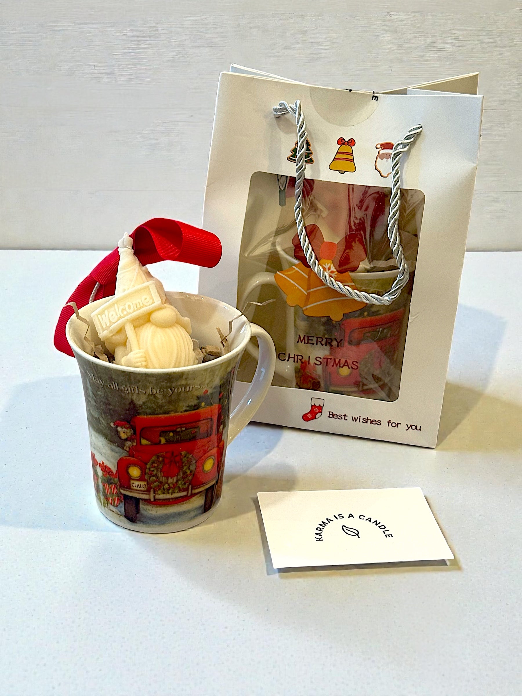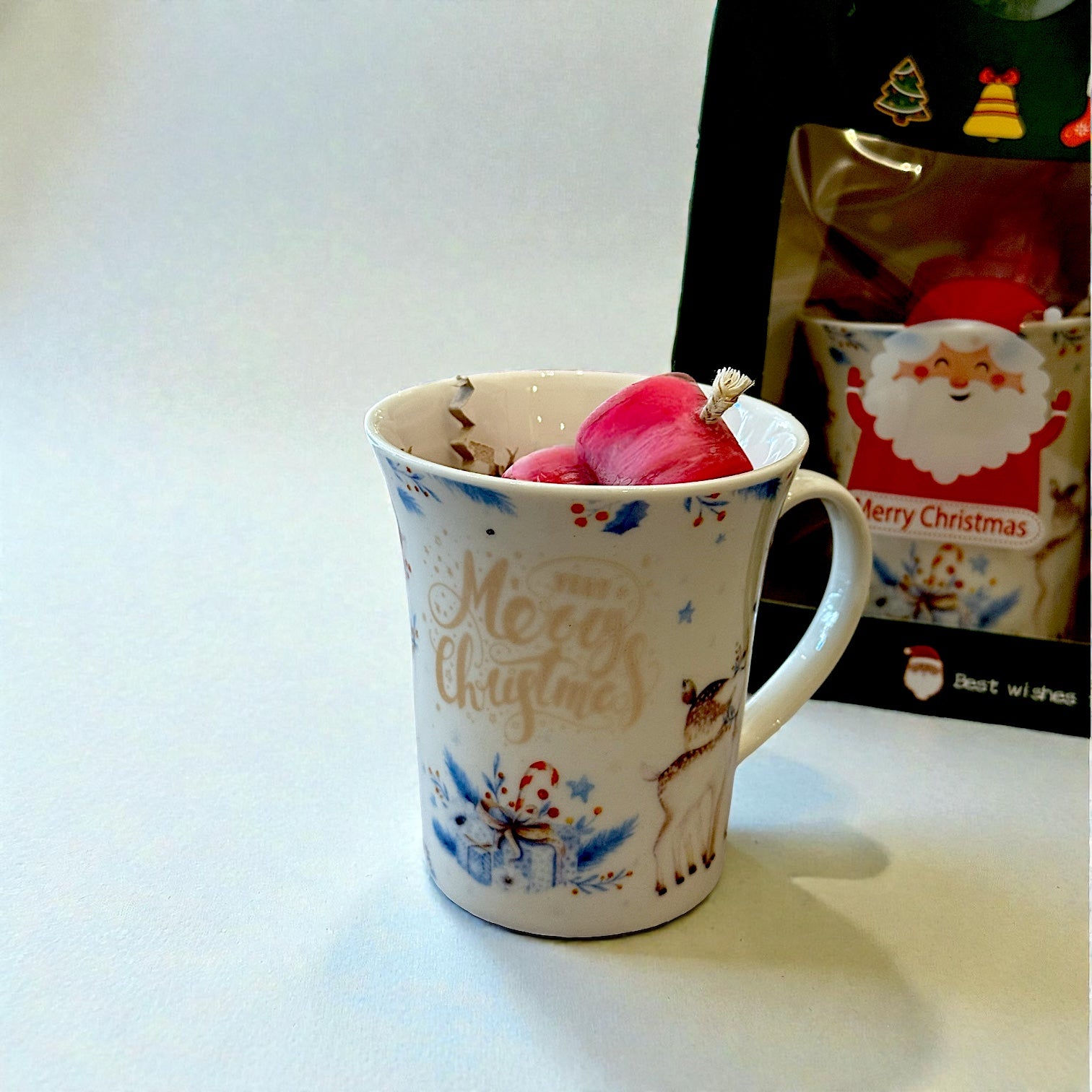 Χριστουγεννιάτικες κούπες με υπέροχα σχέδια για να απολαμβάνεις κάθε μέρα τον καφέ , τη ζεστή σου σοκολάτα ή το τσάι σου. Συνοδεύεται από ένα χειροποίητο μοναδικό κερί από vegan σόγια σε χριστουγεννιάτικη μορφή . Η γιορτινή συσκευασία το καθιστά το ιδανικό δωράκι για αγαπημένα πρόσωπα της ζωής σας.