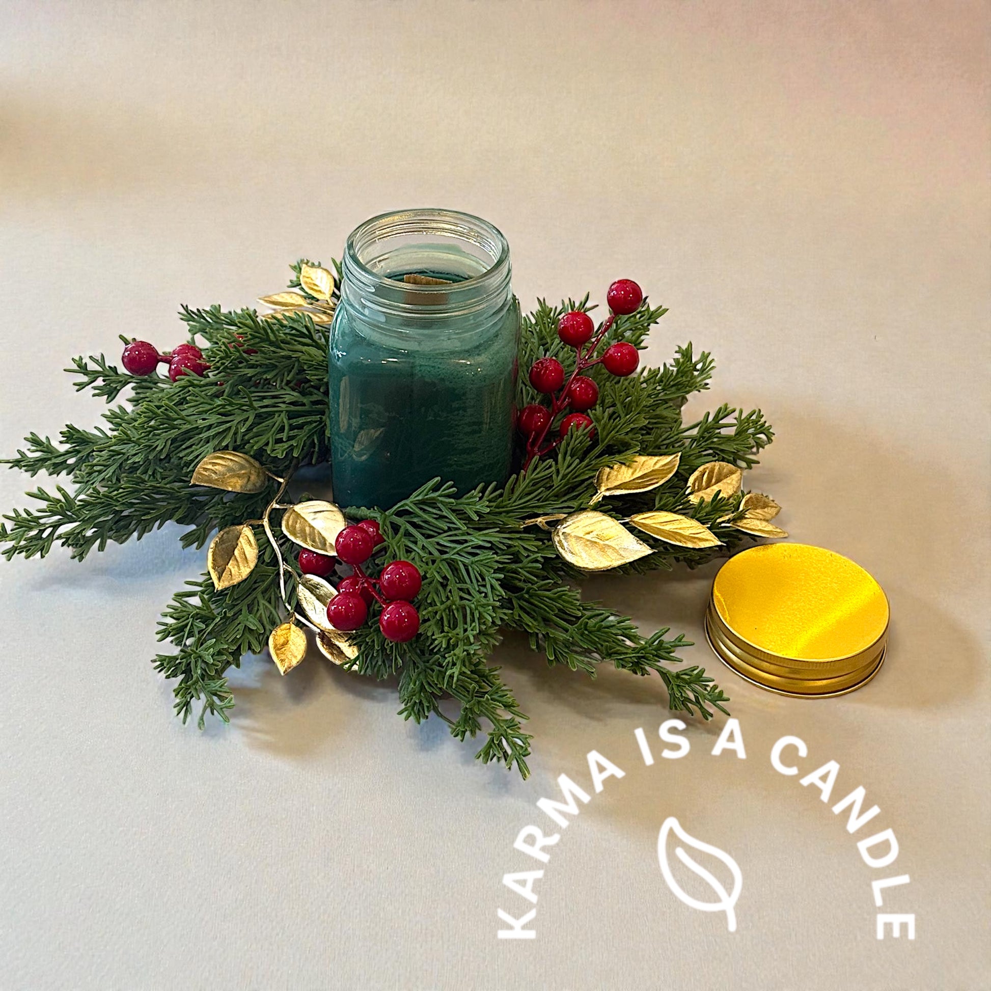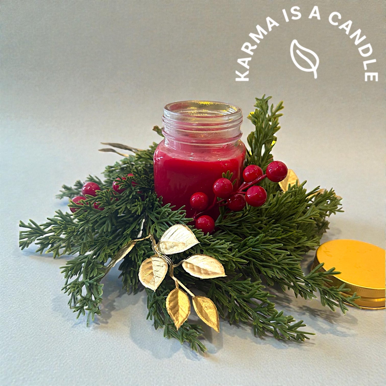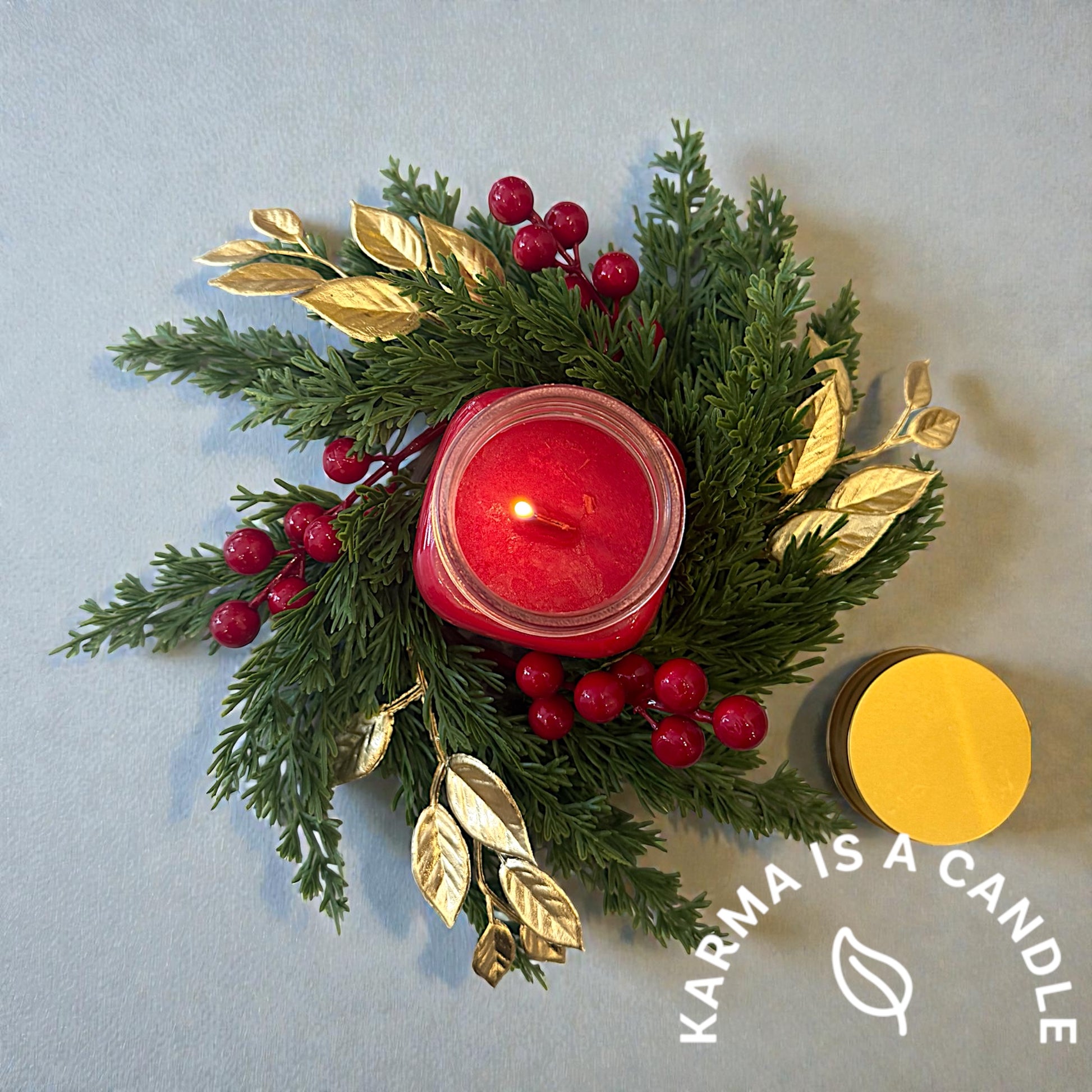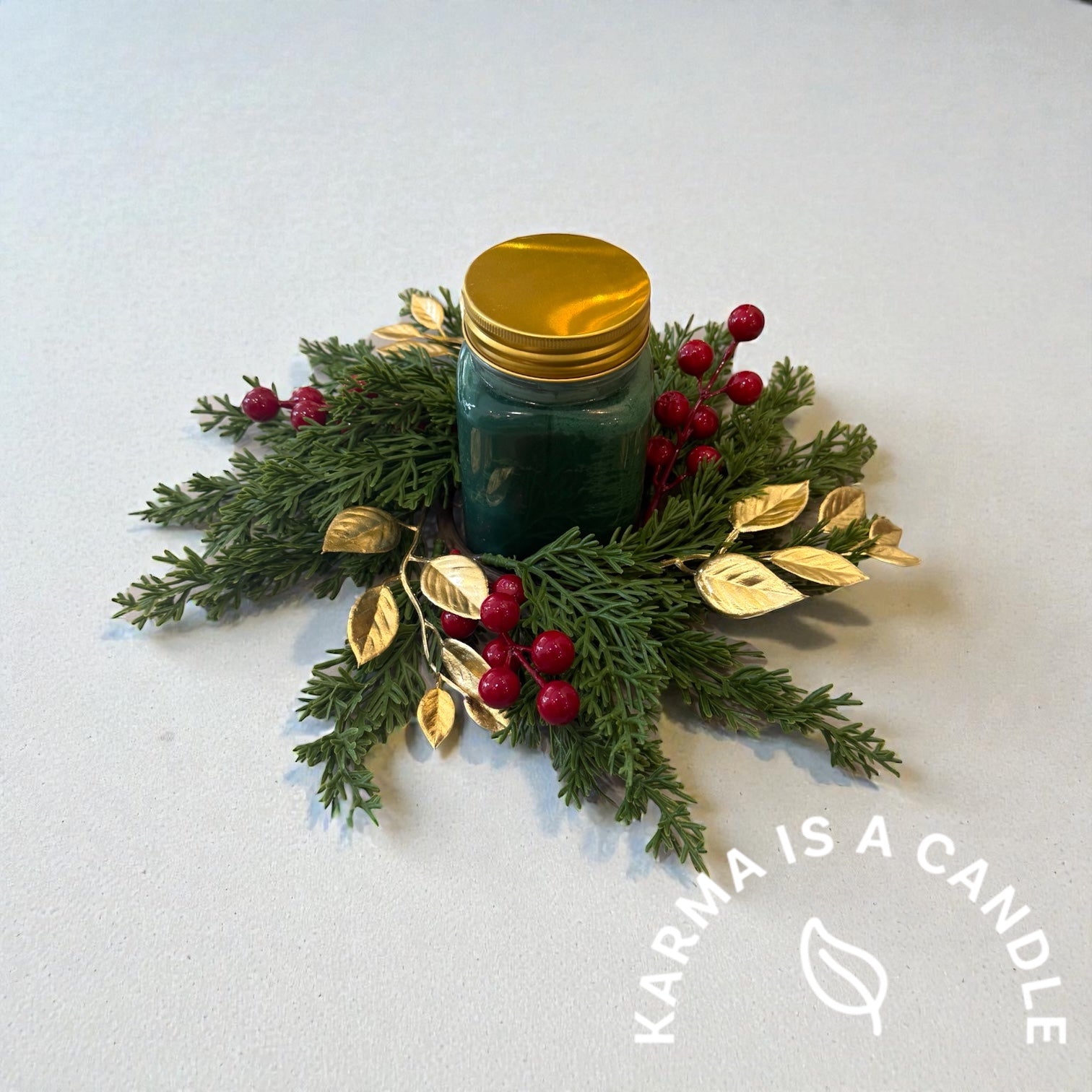 Φώτισε το γιορτινό σου τραπέζι με το elegant χριστουγεννιάτικο στεφάνι της Karma is a Candle, σχεδιασμένο ως το απόλυτο festive centerpiece. Στο κέντρο του ξεχωρίζει το χειροποίητο premium κερί 380ml, φτιαγμένο από 100% vegan σόγια, σε μοναδικά χρώματα που αντιστοιχούν σε διαφορετικά χριστουγεννιάτικα αρώματα (διαθέσιμα μόνο μέχρι εξαντλήσεως). Με μακρά, καθαρή καύση και επαναγεμιζόμενο γυάλινο βαζάκι, αποτελεί μια refined πρόταση art de la table που χαρίζει στο χριστουγεννιάτικο στρώσιμο ατμόσφαιρα υψηλής αισθητικής και ζεστής πολυτέλειας.