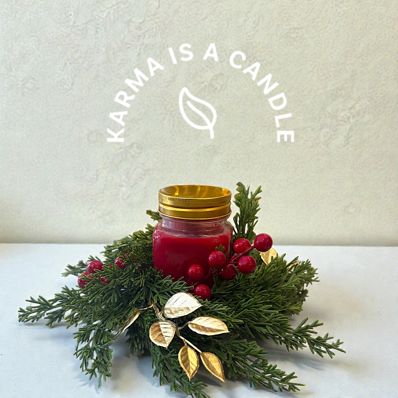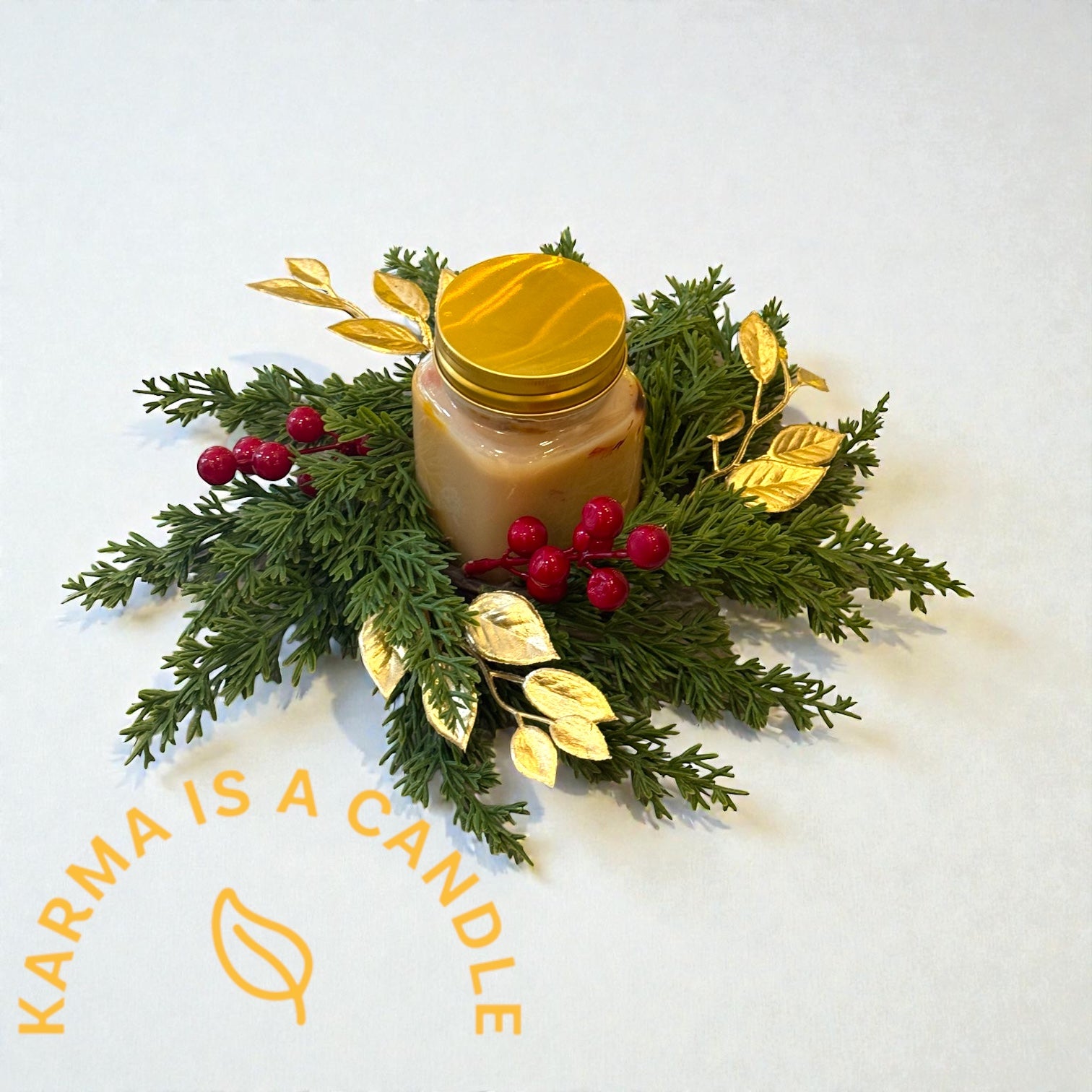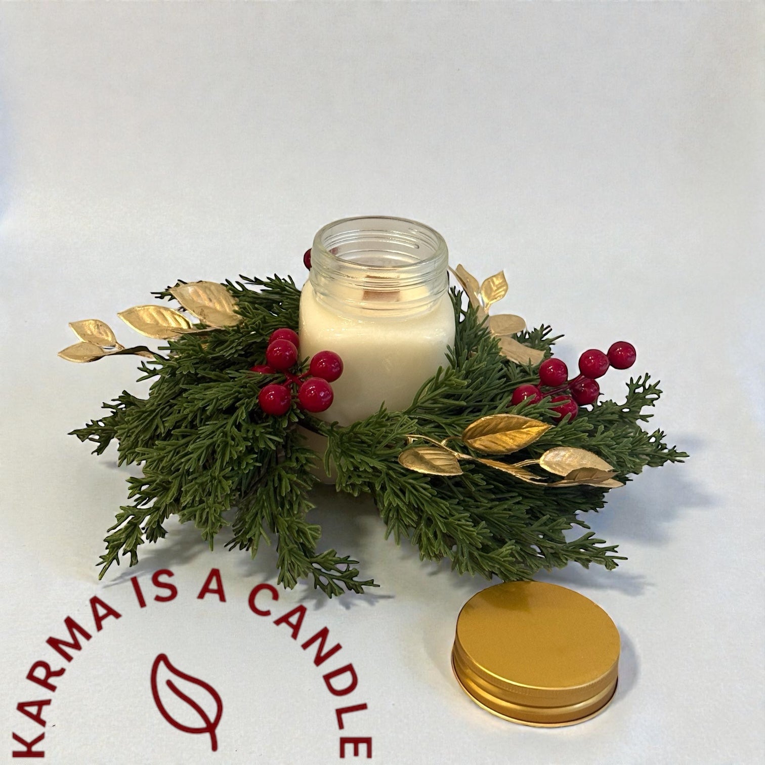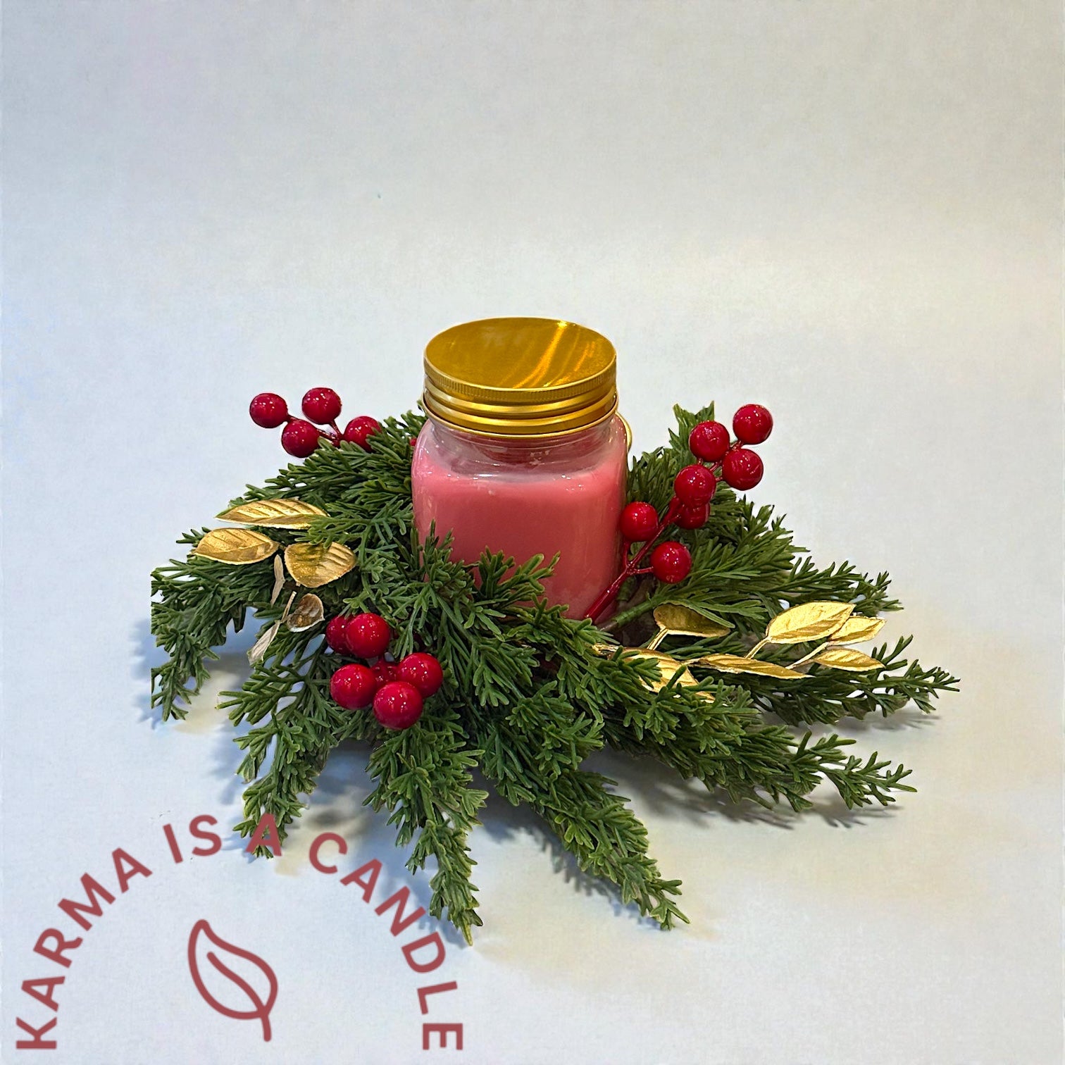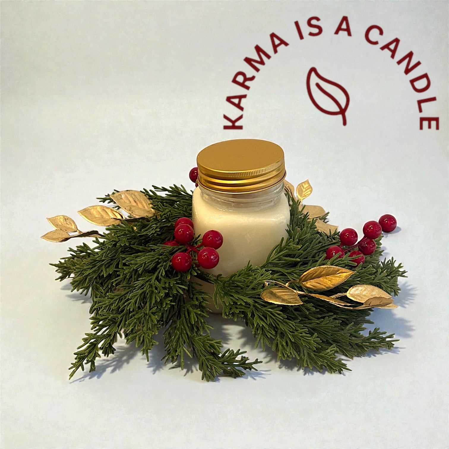 Φώτισε το γιορτινό σου τραπέζι με το elegant χριστουγεννιάτικο στεφάνι της Karma is a Candle, σχεδιασμένο ως το απόλυτο festive centerpiece. Στο κέντρο του ξεχωρίζει το χειροποίητο premium κερί 380ml, φτιαγμένο από 100% vegan σόγια, σε μοναδικά χρώματα που αντιστοιχούν σε διαφορετικά χριστουγεννιάτικα αρώματα (διαθέσιμα μόνο μέχρι εξαντλήσεως). Με μακρά, καθαρή καύση και επαναγεμιζόμενο γυάλινο βαζάκι, αποτελεί μια refined πρόταση art de la table που χαρίζει στο χριστουγεννιάτικο στρώσιμο ατμόσφαιρα υψηλής αισθητικής και ζεστής πολυτέλειας.