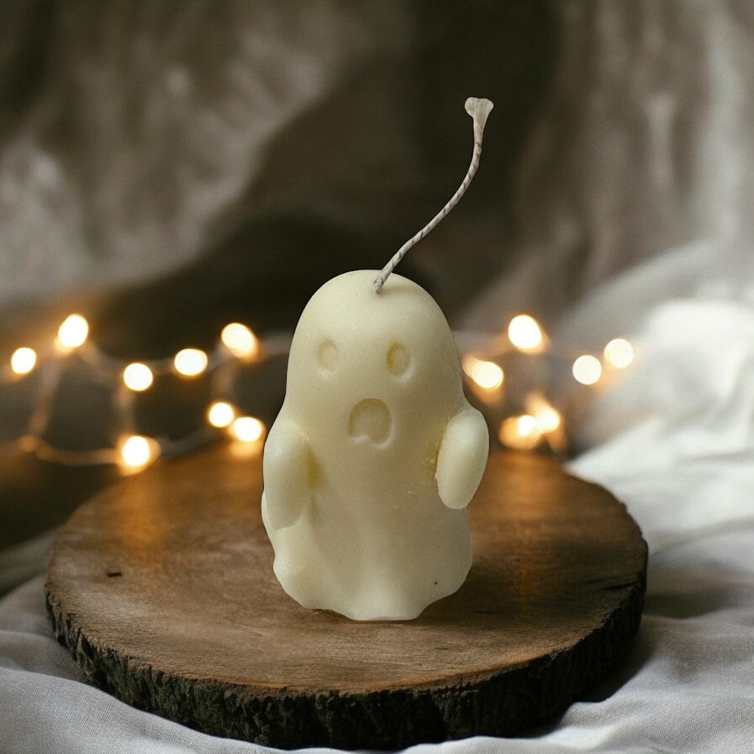 Χειροποίητο κερί σε σχήμα Φαντασματάκι από κερί καρύδας 80γρ για να διακοσμήσετε οποιαδήποτε γωνιά του σπιτιού σας δίνοντας της μια εορταστική παιχνιδιάρικη και spooky διάθεση !